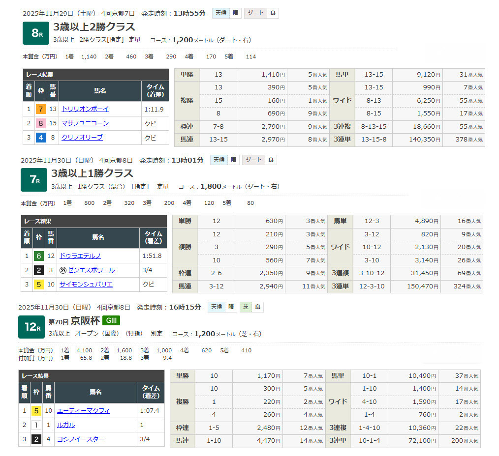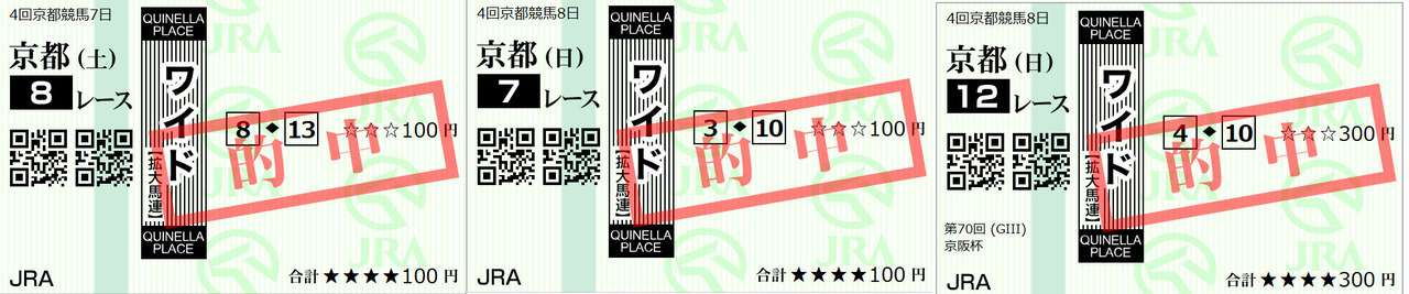 Yさんから嬉しい的中報告がありました。日曜京都11R都大路ステークスで23万9870円、土曜京都11R平安ステークスで20600円馬券を見事ゲットです。Yさん、おめでとうございます! そして、的中報告ありがとうございます。