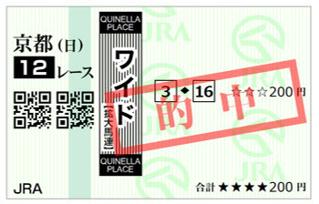 京都5R新馬戦で3連複、ワイド、複勝をゲットできました。手軽にできるのが最高です。SOPがなければ、馬券をこんなに絞ることはできなかったでしょう。SOPと出会うまでは馬連や3連複を10点20点と買うことが多かったのですが、馬券の点数を絞れるので回収率が抜群です。」